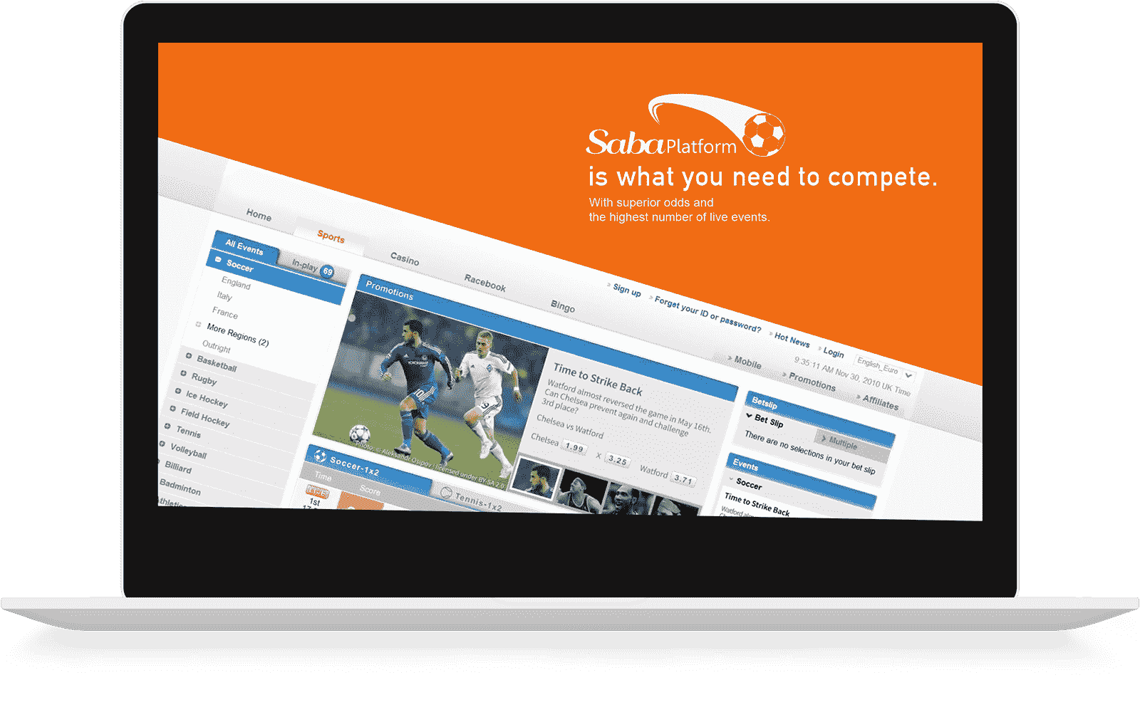 Saba Platform is a sportsbetting platform which have highly degree of soundness, elasticity, and safety. It provides a wide range of sports events, multiple betting types and odds format. More than hundreds soccer league with over 5,000 in-play matches and 18,000 in-play markets be offered per month.